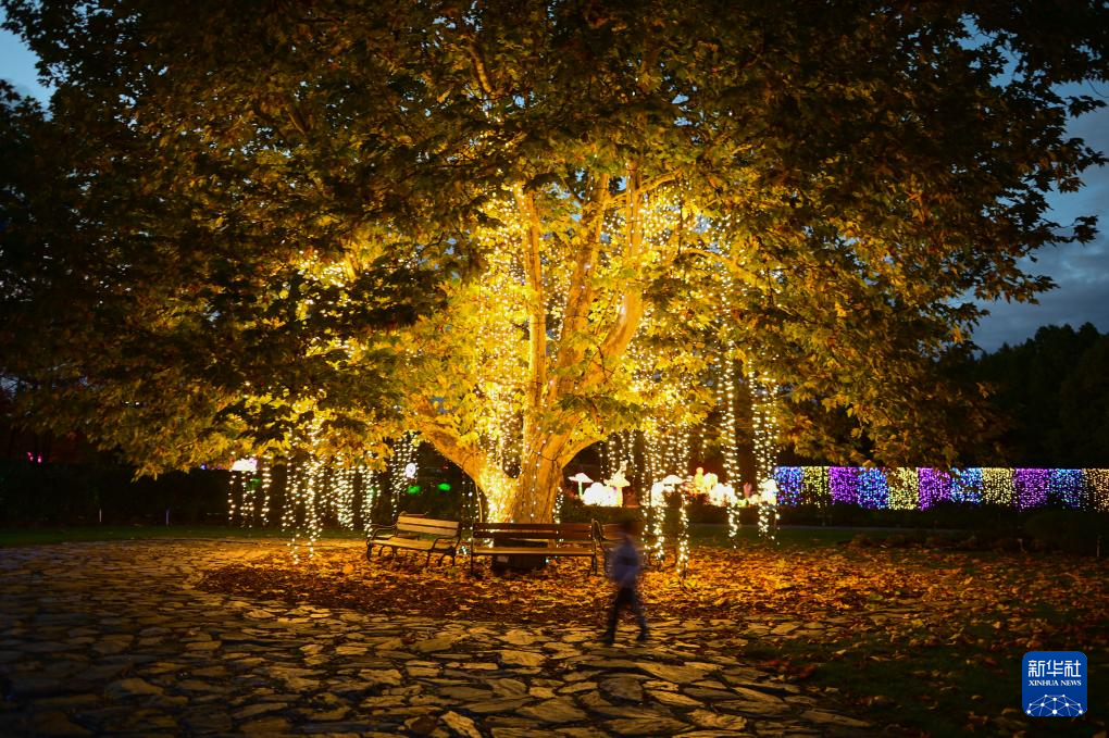 10月25日,在波兰华沙,游客参观波兰科学院植物园举办的“光之花园”灯光展。