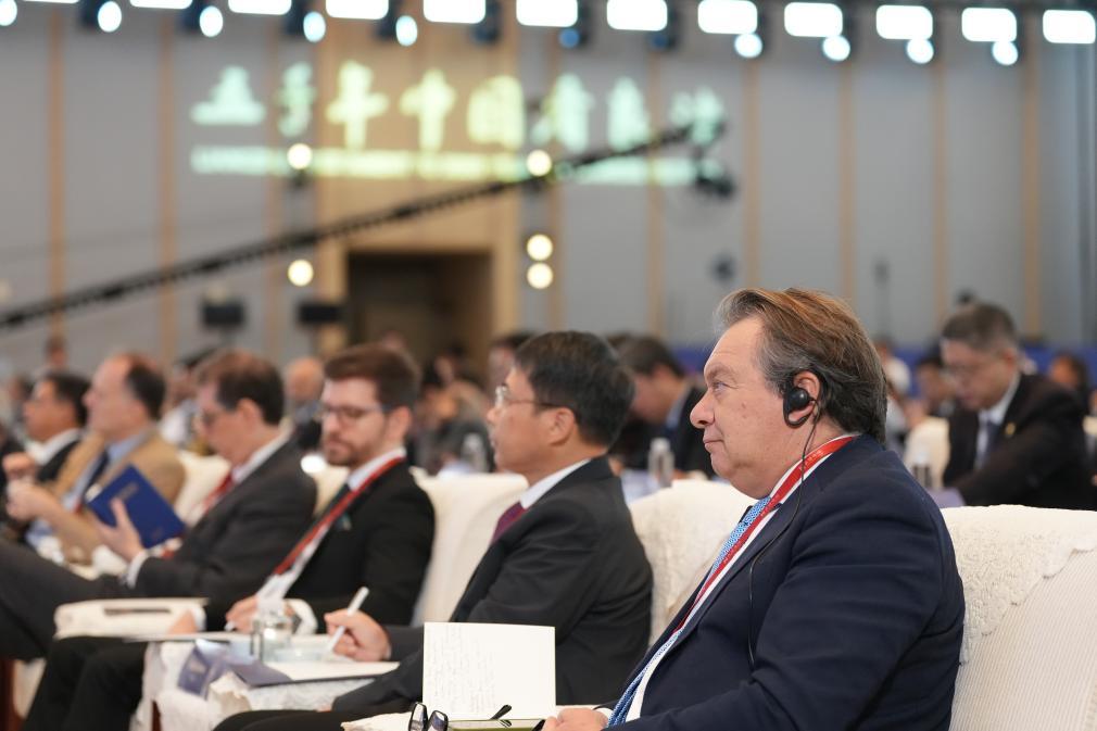 在“世界市长对话·景德镇暨2025景德镇论坛”现场,与会嘉宾参加圆桌对话。新华社记者周密摄