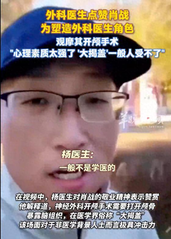 杨医生在视频中提到:“开颅过程涉及颅骨打开,属于高血腥度、高心理冲击的医疗操作,非医学背景人员首次观摩易出现强烈生理不适。但肖战全程坚持观摩,心理素质远超常人。”