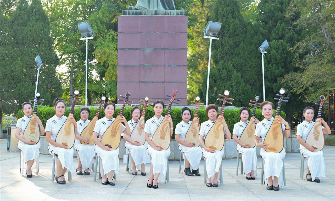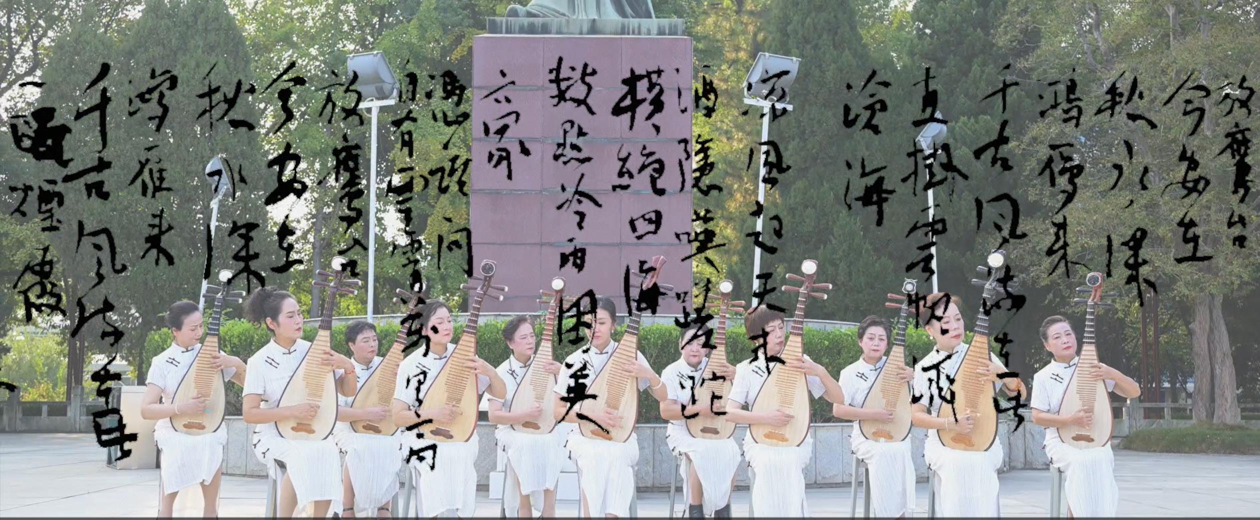 放鹰台,相传为李白在此放飞苍鹰,寄托其“寄言燕雀莫相啅,自有云霄万里高”的豪情。正式拍摄当天,但见这群平均年龄已逾花甲的“老姐姐”,追随着《放鹰台》的乐声,时而激奋轮指,时而舒缓扫弦;轮指的涟漪与扫弦的激越,仿佛穿越时空与诗仙李白进行千年对话……