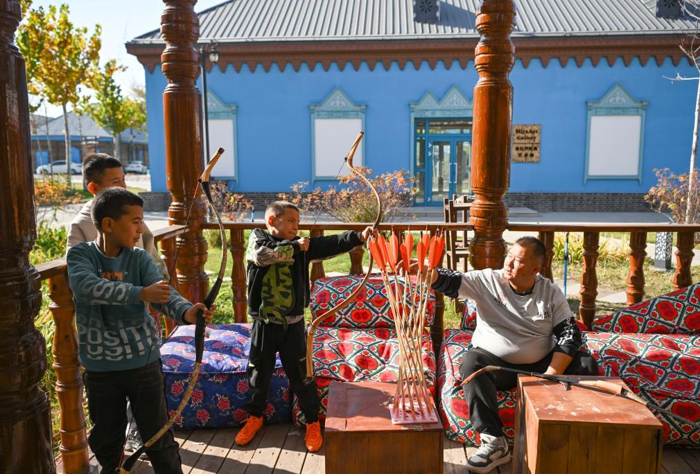 借着非遗文旅热潮,今年初,吴俊亮在伊犁老城文化旅游区开办了一家射箭馆,主推传统弓箭文化。这在该旅游区的20多家非遗店铺中独树一帜。