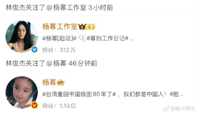 杨幂回复申请点歌:“真的吗!可以点一首茉莉雨吗!开心尖叫!”,随后,林俊杰关注杨幂和杨幂工作室后,杨幂回关啦