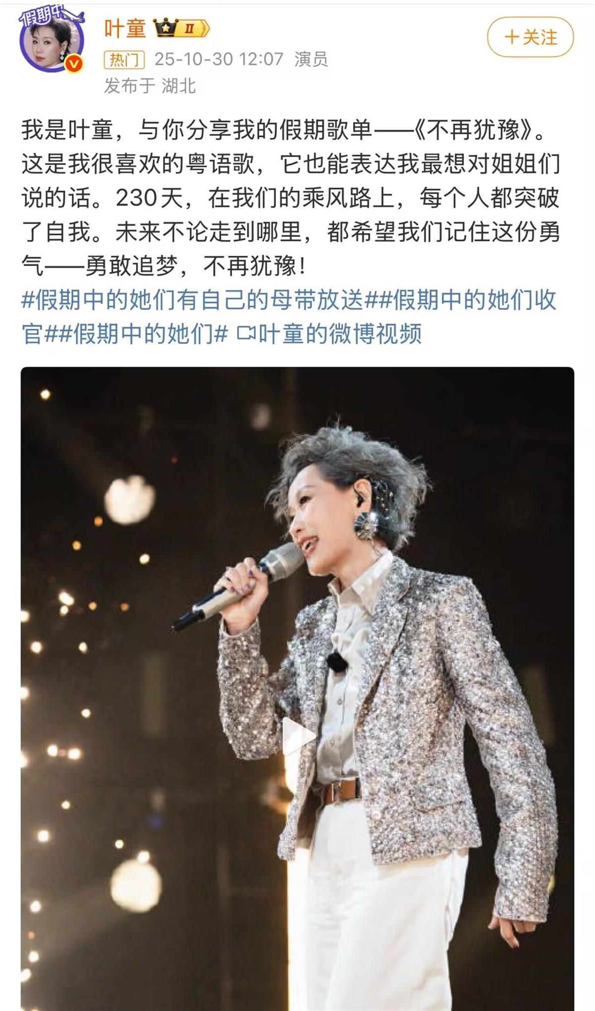 这场假期旅行的初衷,从一开始就不局限于观赏风景。节目以独特的女性视角切入,呈现了成熟女性在社会中所承担的多元角色与丰富面貌。在长治站的旅程中,1500位女性齐聚一堂,不仅以一首《她行》的合唱传递“她力量”,更是从快递员、消防员等各行各业的女性代表身上,让人看到了女性的坚韧与智慧。从《乘风2025》到《假期中的她们》的231天,姐姐们走过10座城市,在祖国的大好河山与人间烟火中并肩相伴。她们既是对手又是伙伴,更是城市文化的体验者、情感共鸣的见证者。叶童在收官时倾情写下的“感谢相遇,为所有女性,也为这个假期,注入了满满的力量”,道出了所有姐姐们的心声,也让旅途中每一个相处瞬间都汇聚成女性群像的美好表达:真诚相待,彼此珍爱。