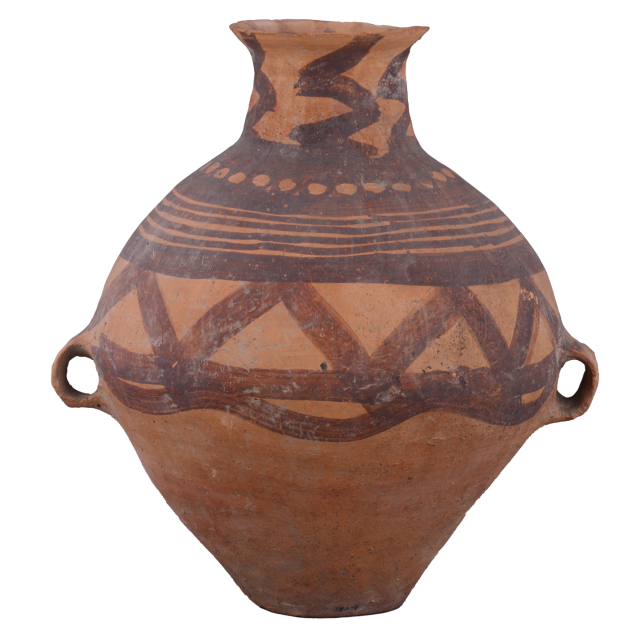 辽宁省博物馆公共服务部主任康宁说,先民以采集渔猎为主要经济活动,水是生命之源,他们便借助这波光粼粼的水波纹,寄托对自然的感恩与对生命的敬畏。此件陶壶是马厂类型彩陶艺术及先民自然崇拜观念的珍贵实物见证。