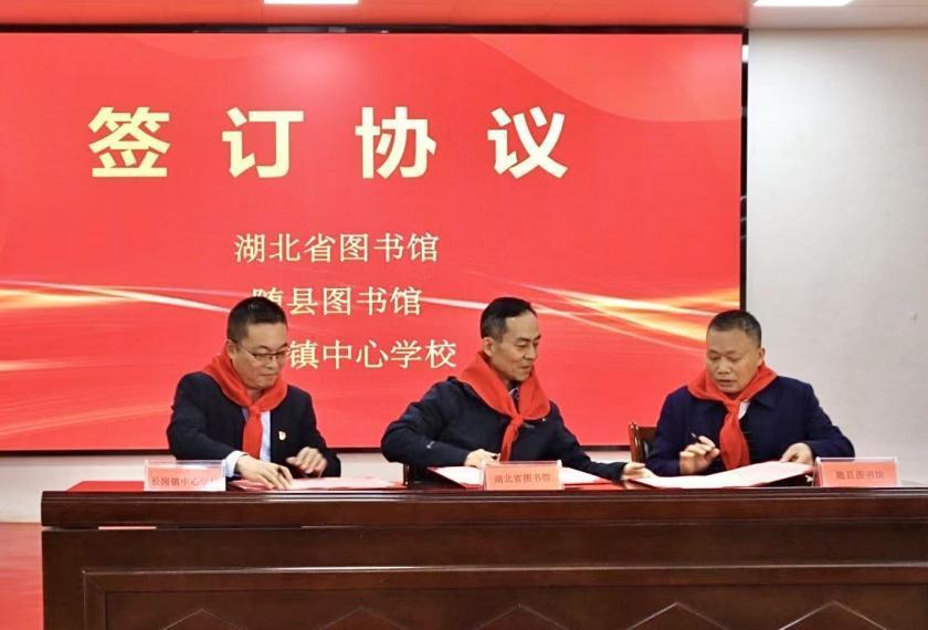 为推动长效共建机制落地落实,湖北省图书馆、随县图书馆与长岗中学现场签署了湖北省图书馆直属分馆协议,标志着图书馆与学校教育资源的融合进入了新阶段。长岗镇中心学校图书室的建设是由湖北省图书馆积极牵线、《企业与市场》智库产业联盟捐建而成。其中1.8万余册藏书汇聚多方资源:湖北省图书馆流通图书1.5万册,武汉市育才小学捐赠3000册。