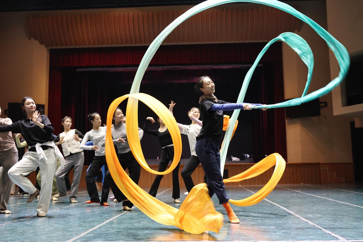甘肃省歌舞剧院舞蹈演员在剧院排练厅排练新版《丝路花雨》(11月3日摄)。新华社记者 陈斌 摄