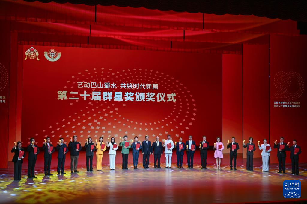 11月4日,“大地情深”——全国优秀群众文艺作品展演暨第二十届群星奖颁奖活动在重庆群星剧院举行。经过初选、复评及终评,最终从全国报送的数千部音乐、舞蹈、戏剧、曲艺、广场舞、群众合唱类作品中评选出60个获奖作品(团队)。