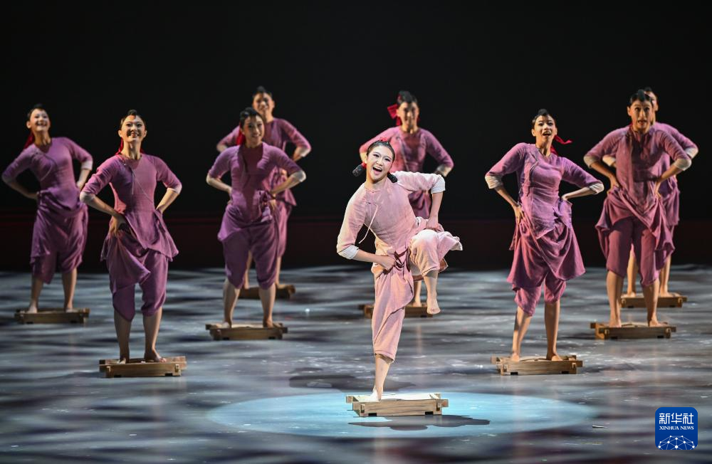 11月4日,在重庆群星剧院,演员表演舞蹈《蒸蒸喜乐》。