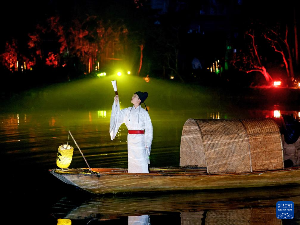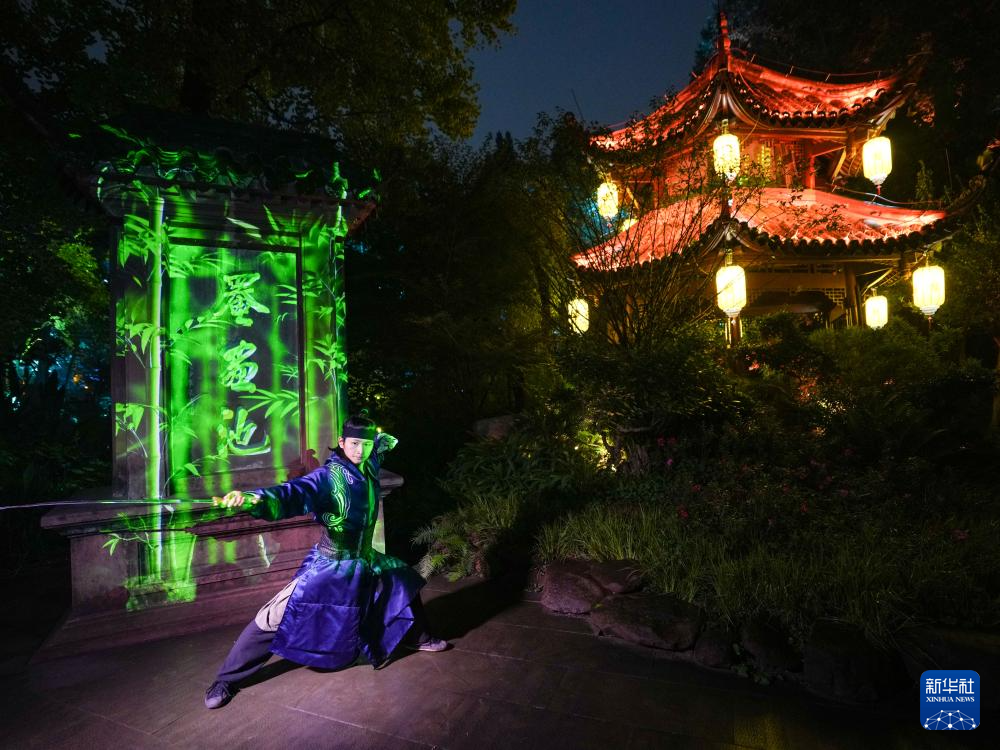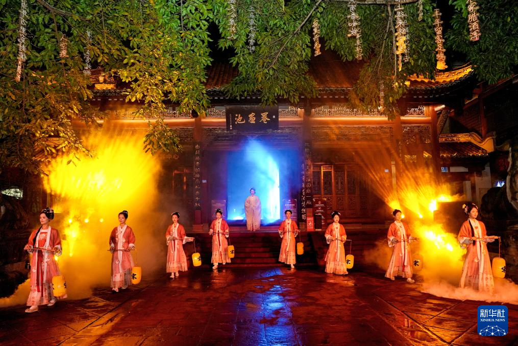 11月5日,在成都崇州市罨画池,演员在开幕式举行前进行文化实景演出。