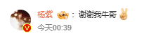 杨紫火速回复:谢谢我牛哥。是超级无敌长久的朋友啊!