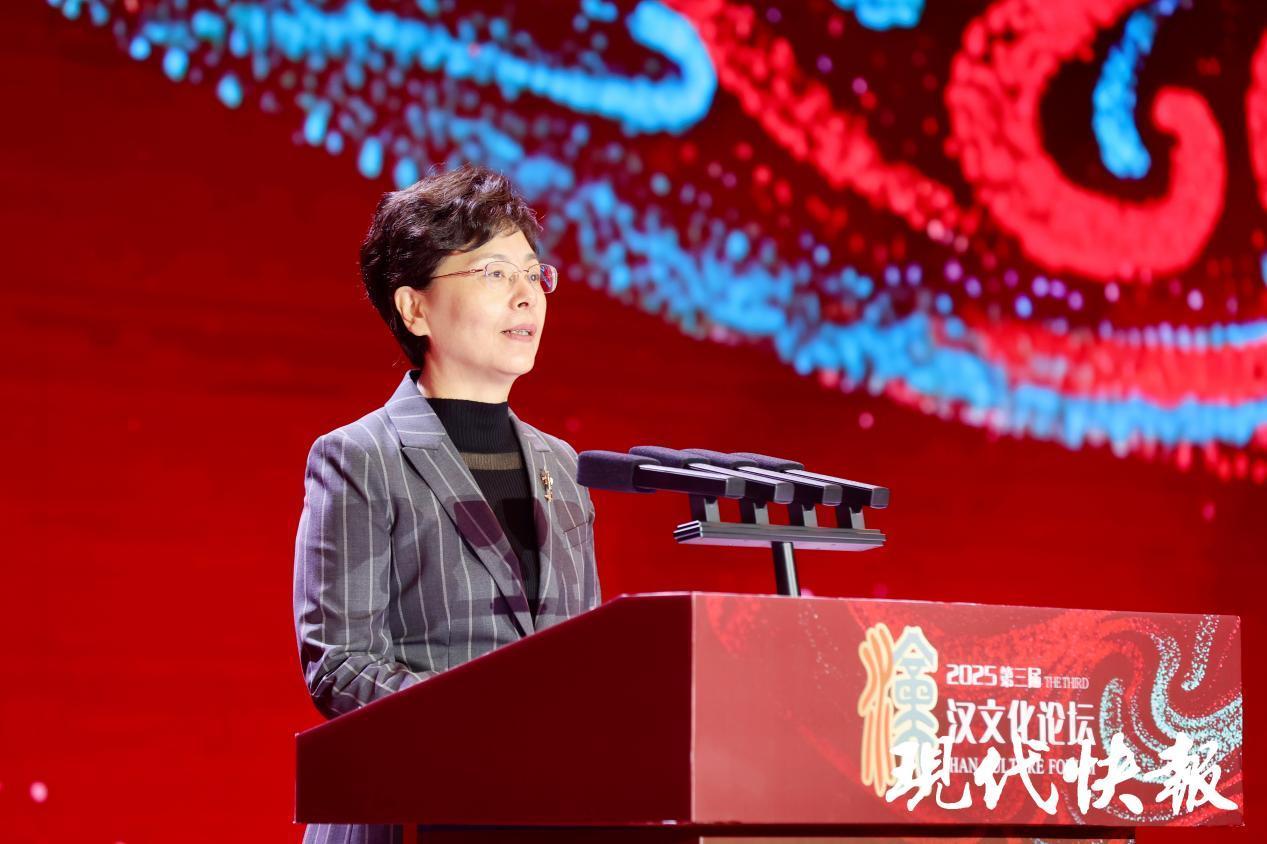 徐缨在致辞中说,本届汉文化论坛以“何以为汉·和合共生”为主题,聚焦数智传播、文明互鉴、文博考古、文脉传承等重要议题,既是深入学习贯彻党的二十届四中全会精神的具体行动,也是江苏打造习近平文化思想生动实践地的重要举措。江苏将以举办本次论坛为契机,持续深化两汉文化研究,大力推动文化传承发展,坚守根脉魂脉,推进自信自强,担当“探索新经验”的使命,让文化创新创造活力全面激发、竞相涌流。