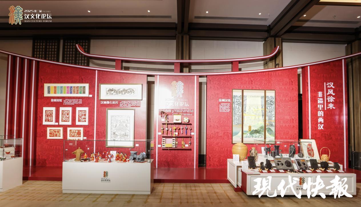 本届论坛特别设置了“书卷里的两汉”“非遗里的两汉”展陈板块。“书卷里的两汉”展区展出了3套现珍藏于凤凰出版传媒集团珍本馆的“镇馆级”古籍,包括明万历四十七年钟人杰校刻本《汉书》、明天启六年郎壁金堂策槛刊本《白虎通》,以及宋刻本《锦绣万花谷》的精美复刻本。“非遗里的两汉”展区集中展陈了徐州汉绣、香包、剪纸、泥塑、面塑等非遗作品,以及80余件以徐州博物馆馆藏文物为灵感的文创产品,让汉文化从典籍里走出,在活态传承中融入当下生活。
