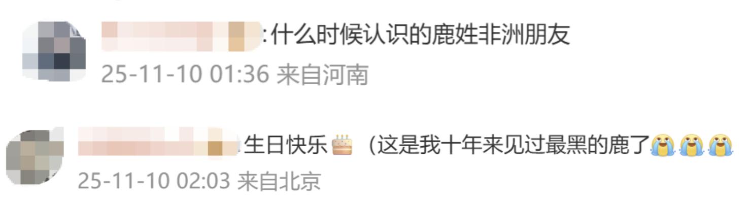 评论区有网友笑称:“靠发色找” “什么时候认识的鹿姓非洲朋友”