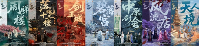 在场景设计上,《水龙吟》创新性地采用了“以色分境,一境一色”的理念。人间江湖的部分使用温暖、浓郁的色彩,突出生命力与烟火气;而超凡之地则运用清冷色调,营造“超玄入幻”的意境。这种差异化的色彩运用,让每个场景都拥有独特的视觉标识,直接参与世界观的构建和叙事。