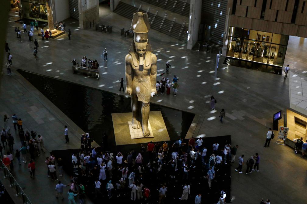 11月4日,大埃及博物馆正式向公众开放。这是古埃及法老拉美西斯二世巨像。新华社发(艾哈迈德·戈马摄)