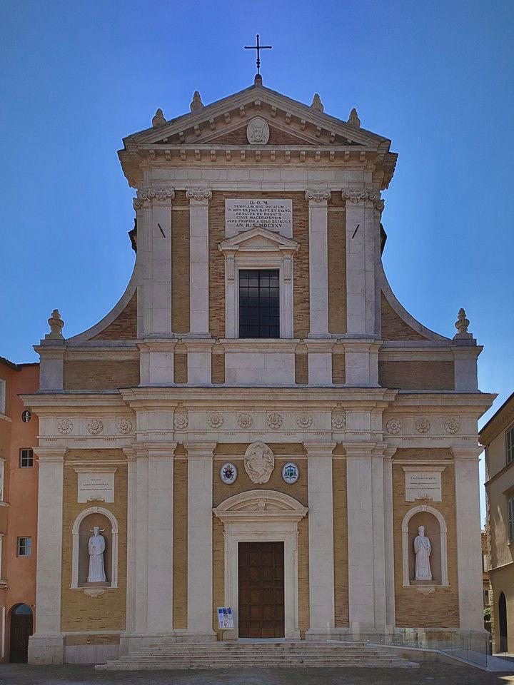 马切拉塔市中心圣若望主教座堂,左右两侧壁龛雕塑分别为徐光启和利玛窦。(孙旭义摄)
