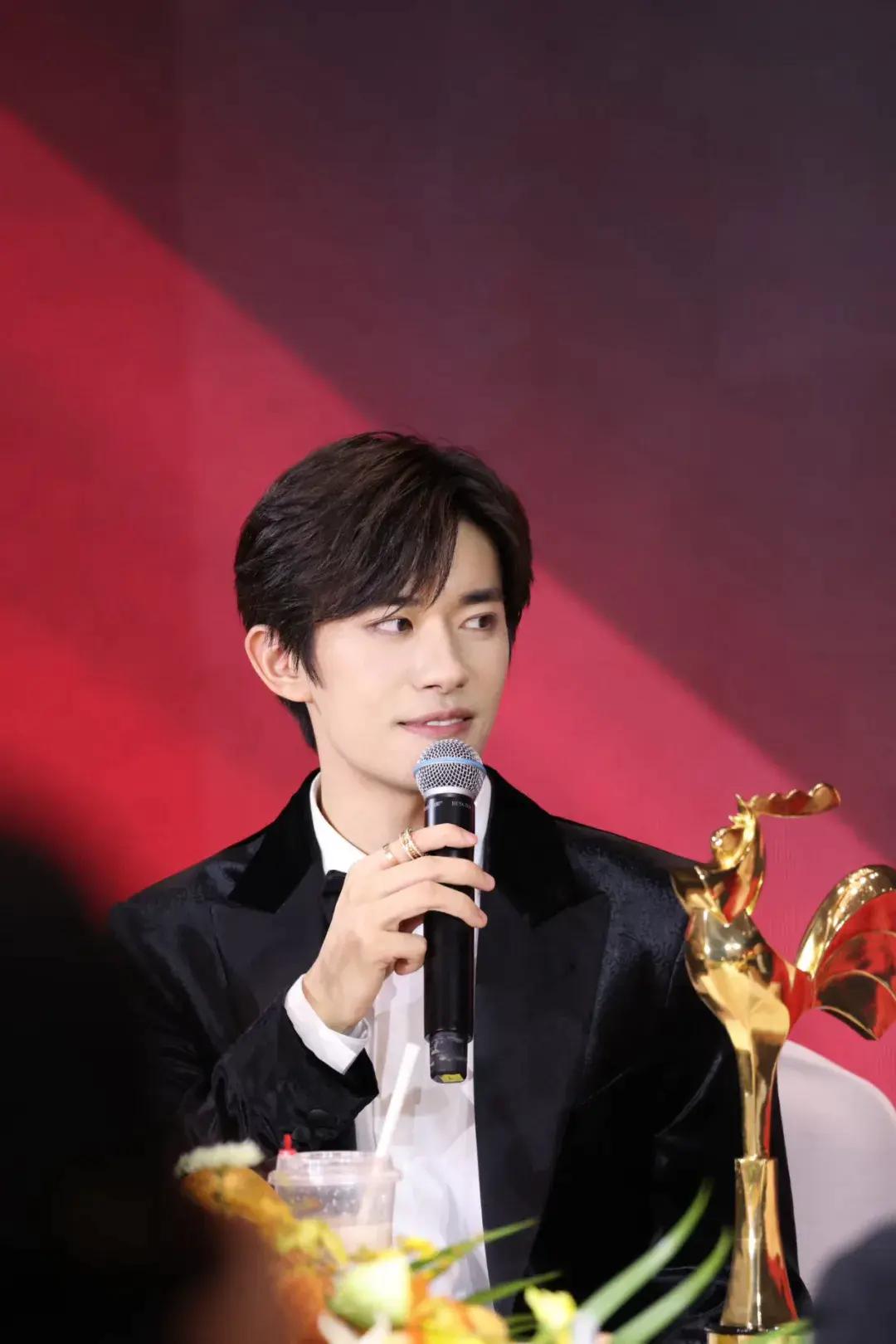 颁奖典礼结束后,易烊千玺拿着奖杯与证书做客CCTV-6《蓝羽会大咖》访谈节目,与最佳女主角宋佳等获奖代表一起分享此刻心情。