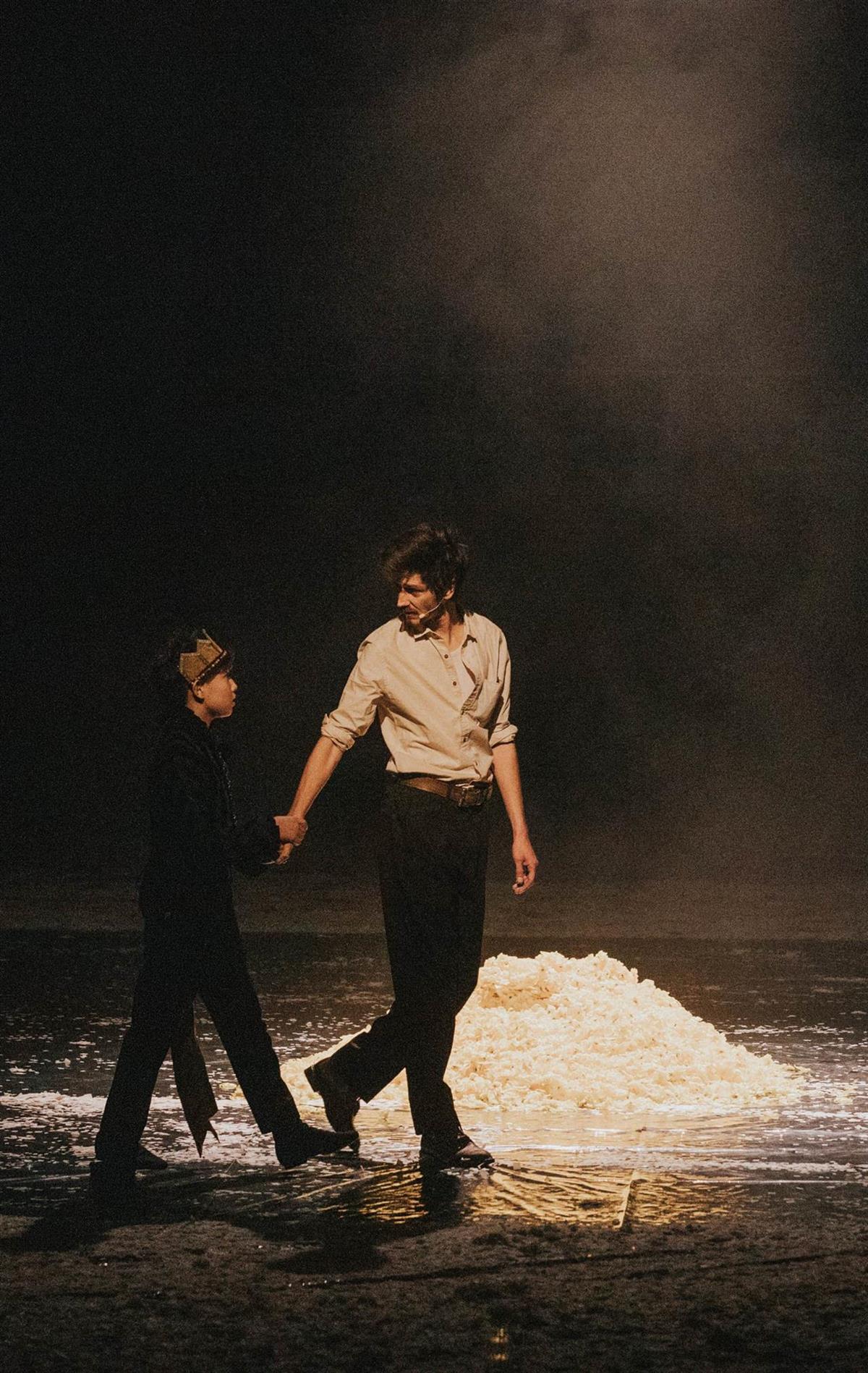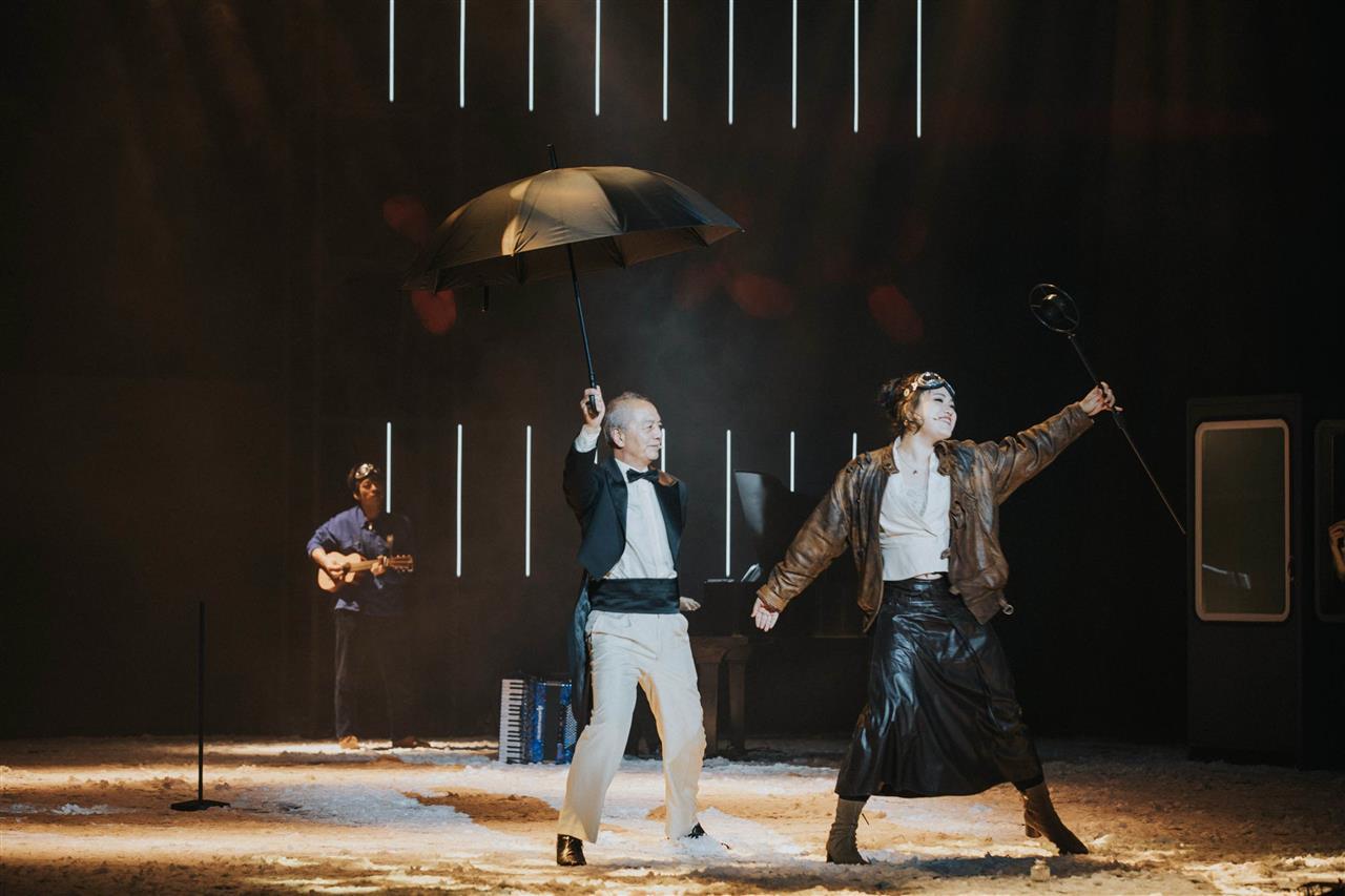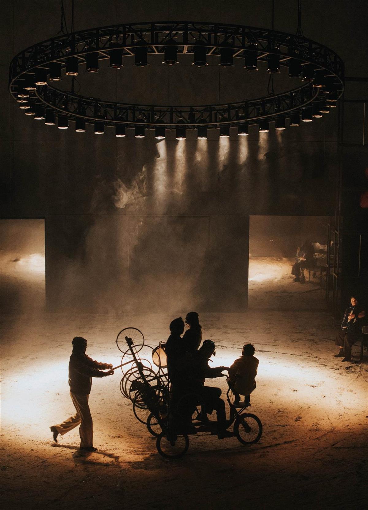 央华版《小王子》最大特点是,它是一部完整意义上的音乐戏剧(musical play),不是音乐剧,也不是配乐戏剧。音乐不是配合,而是叙事本体。创作团队邀请三位中国音乐人共同参与,钟立风(以文学性著称的民谣诗人),小六(独立音乐人,长于即兴创作),凡清(创作型歌手)。他们不仅负责音乐创作,还在剧中出演多个角色。此外,剧中还有一位乐手陈敏华也参与了创作,她也是音乐剧《悲惨世界》的手风琴和键盘手。最重要的是,音乐在排练现场与文本同步生长。没有预设、没有既定旋律,一切音乐都来源于排练中的即时灵感与演员的身体节奏。这种创作方式在法国诗性剧场传统里常见,但在中国舞台体系中还很少见。