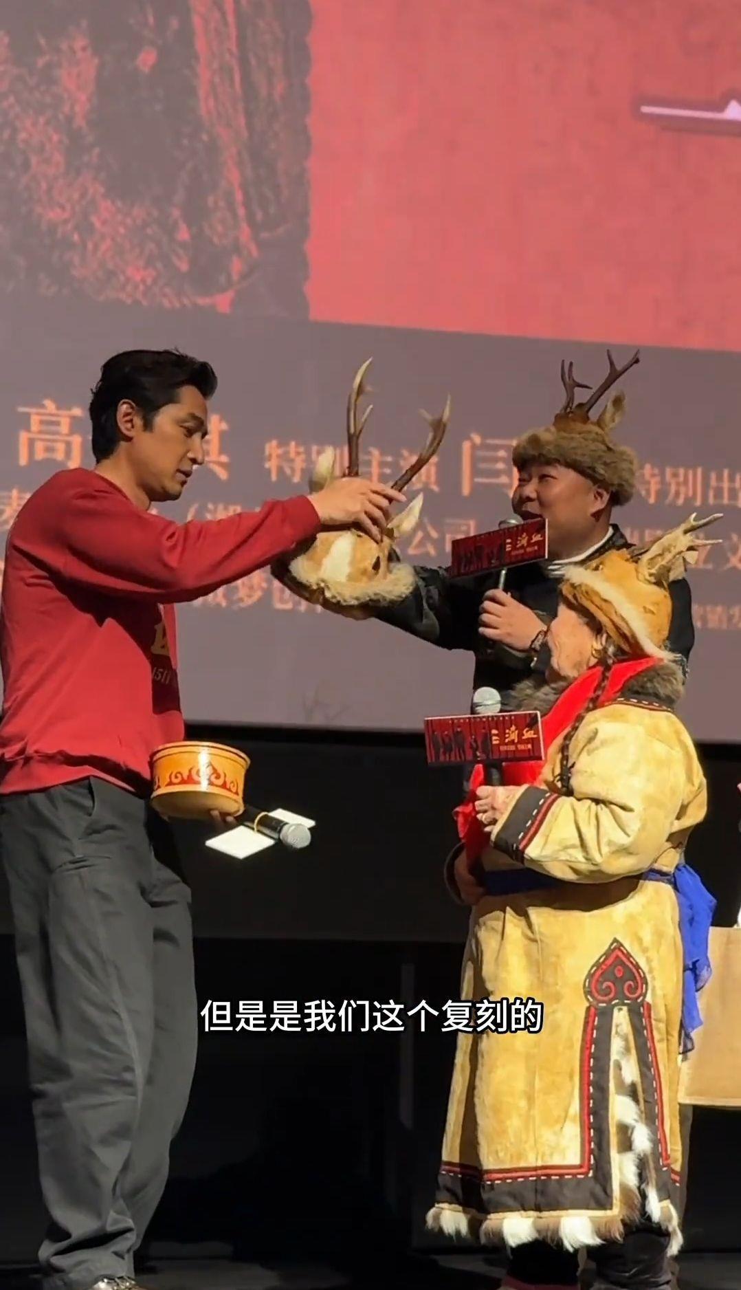 近日,电影《三滴血》首映礼上,内蒙古鄂伦春族非遗传承人“小花鹿奶奶”在现场将她亲手制作的桦皮盒与狍角帽(复刻版)赠予演员胡歌,奶奶还一脸慈爱地贴面吻了胡歌并向其说道“我们都喜欢你”。“小花鹿奶奶”不仅是鄂伦春族非遗的守护者,也是电影《三滴血》中鄂伦春摇篮曲的献唱人,她赠予胡歌的桦皮盒历时三个月纯手工制成,这份礼物承载着长辈对晚辈的祝福。