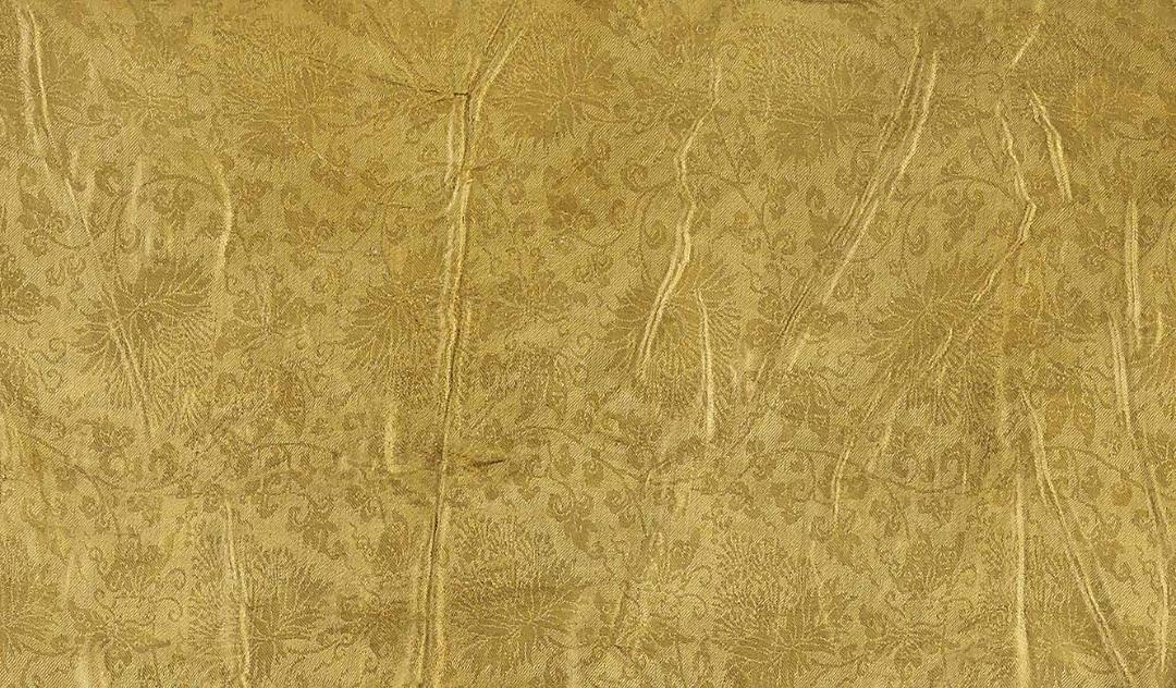 浙江黄岩博物馆收藏的宋代对襟双蝶串枝菊花纹绫衫,将菊纹之美融入日常服饰。衣身以双蝶串枝菊花暗花绫制成,重瓣菊花错落分布在枝蔓之间,蝴蝶翩跹其间,花、枝、叶、蝶循环连续,形象栩栩如生。绫衫的暗花纹样细腻精巧,在光线下若隐若现,既不失服饰的实用性,又暗藏雅致情趣。