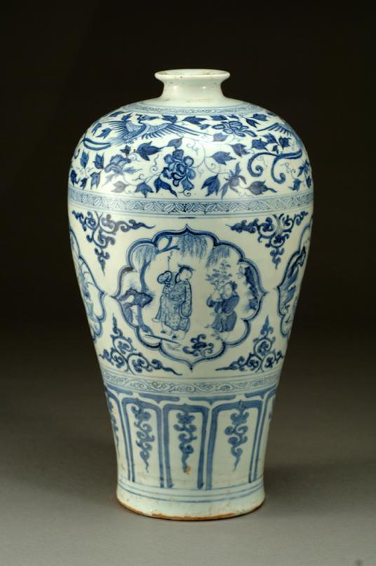 元青花四爱图梅瓶是湖北省博物馆的镇馆之宝之一,2006年出土于钟祥郢靖王墓。梅瓶腹部四个菱形开光内分别描绘了王羲之爱兰、陶渊明爱菊、周敦颐爱莲、林和靖爱梅鹤四幅人物故事图。其中“陶渊明爱菊”图,生动展现了陶渊明与菊为伴的田园生活,体现了古人对菊花高洁品格的赞美,是古代文人雅士爱菊的直接见证。元青花是中国古代青花瓷中的精品,元青花四爱图梅瓶更因其罕见的题材和精美的工艺成为稀世珍宝。