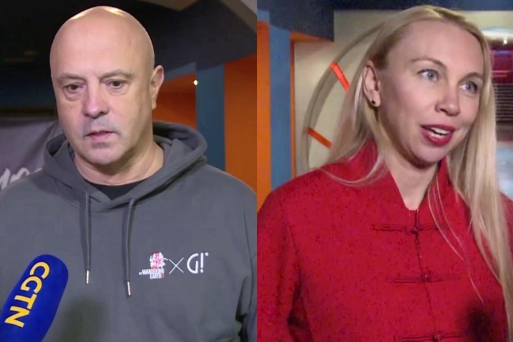 △俄罗斯演员沙罗格拉茨基(左)与观众波古季娜(右)