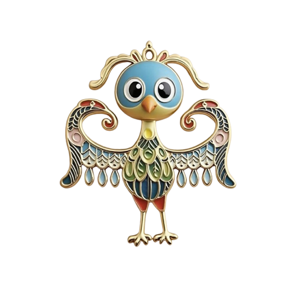 湖北工业大学设计者徐新云从荆州博物馆的“凤鸟花卉纹绣浅黄绢面棉袍”中提取凤鸟元素,塑造兼具实用与装饰性的IP形象,让千年纹样以灵动萌趣的形态融入日常。设计者李斯本从楚文化“楚凤涅槃,鹿角通灵”中汲取灵感,设计出兼具古典韵味与现代审美的“鹿啾啾”形象。设计者余鸿俊以“藏酒于匣,雅趣随身”为理念,将猪形酒具盒化身可翻盖冰箱贴。