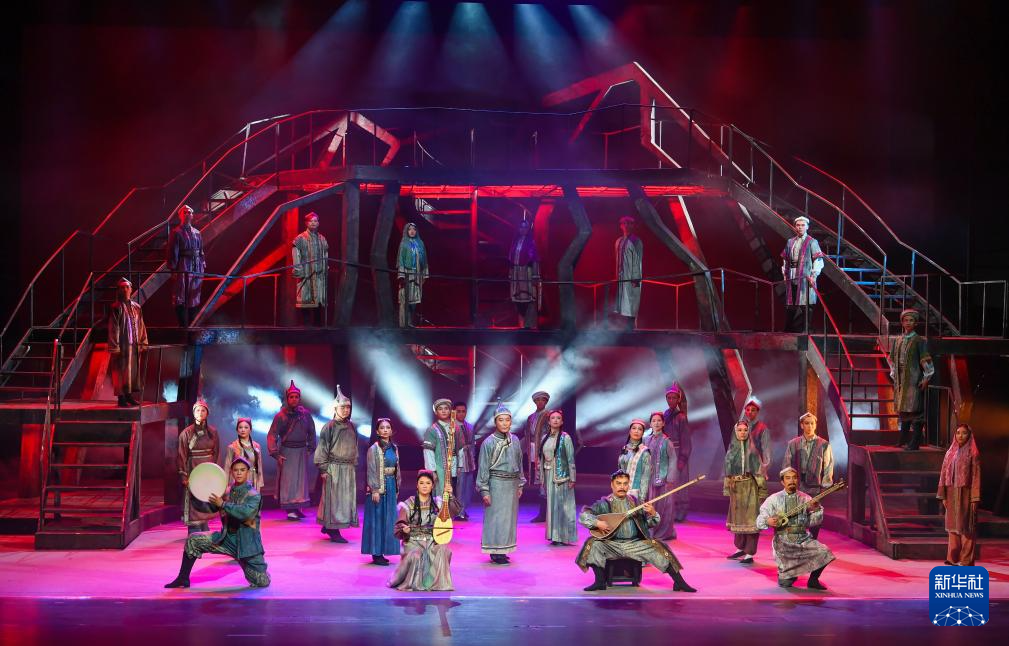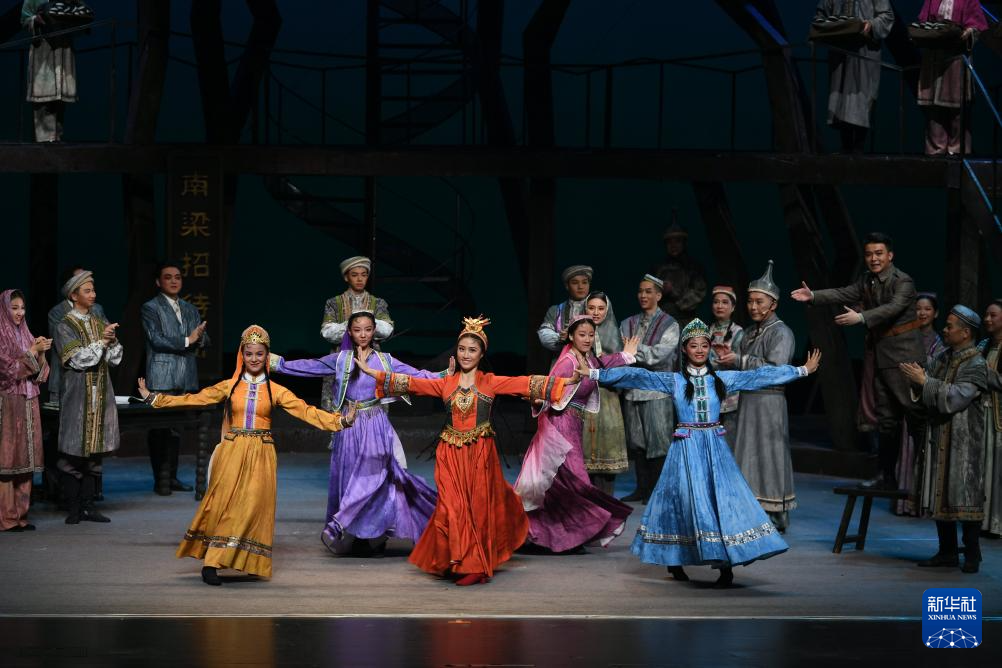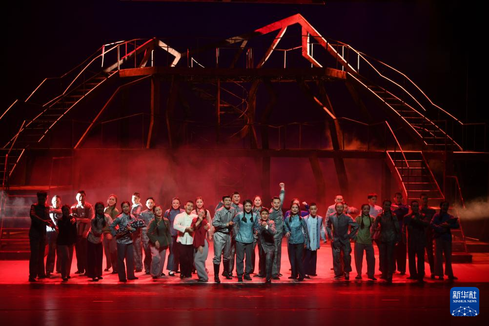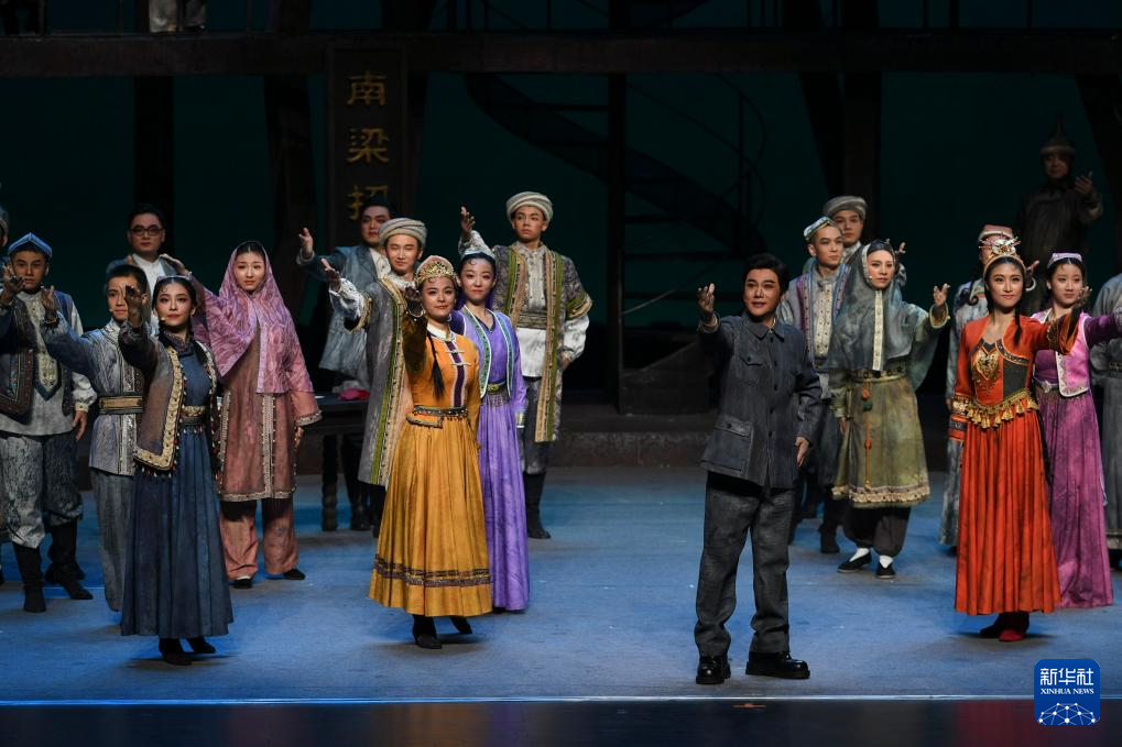11月21日晚,2025援疆省市精品舞台剧目展演季重点剧目——原创红色题材大型现代黄梅戏《铸魂天山》在新疆乌鲁木齐京剧院首演。