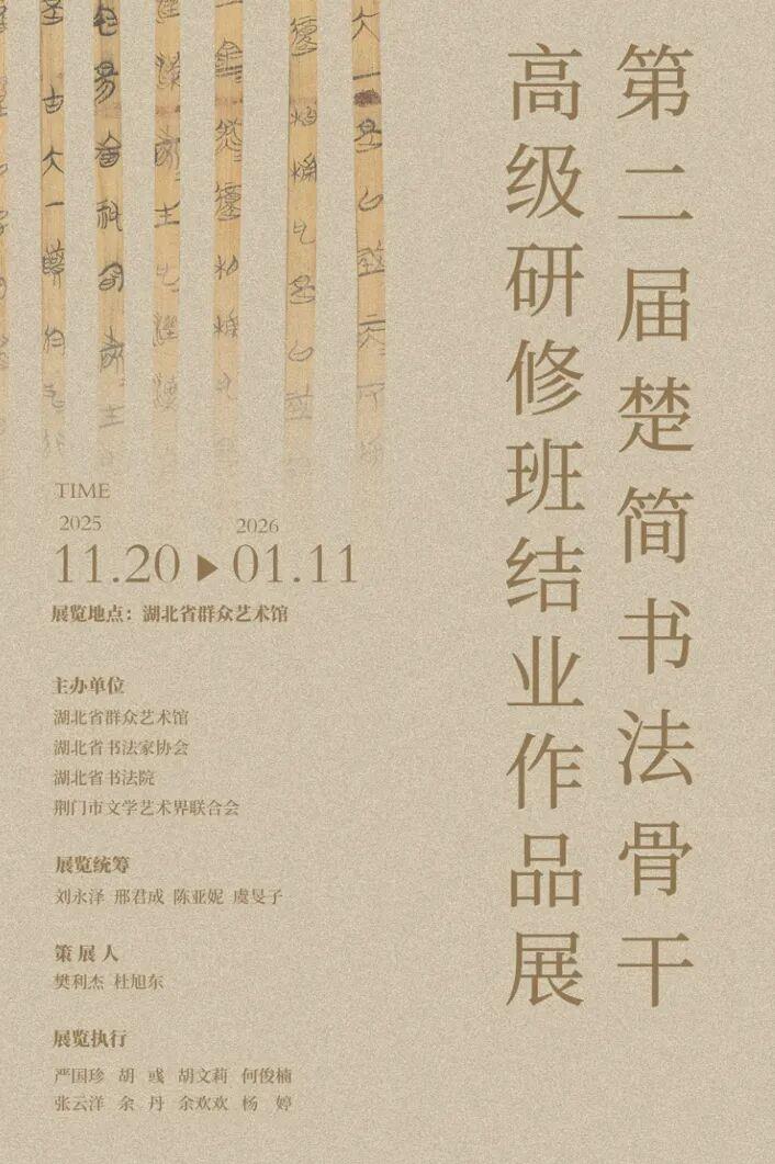 2025年11月20日,第二届楚简骨干高级研修班结业作品展在湖北省群众艺术馆开幕。