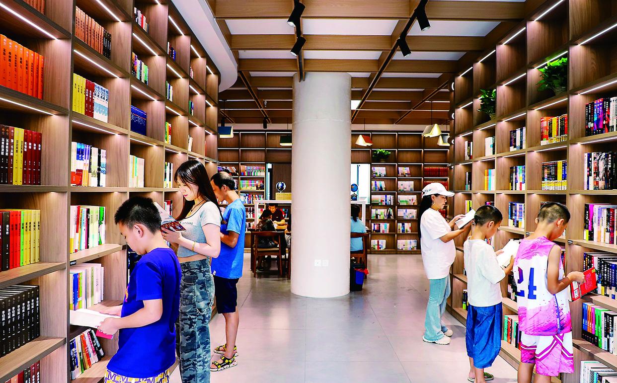 少儿阅读区里,志愿者正带领孩子们走进安徒生的童话世界。“我们社区经常在这里举办读书活动,目前的计划是一年20多场。”社区工作人员介绍,抱石书房多由社区闲置空间改造而成,配备自助借还书机等智能化设备,通过“政府建设+书店供书”的公益合作模式,确保图书常换常新。