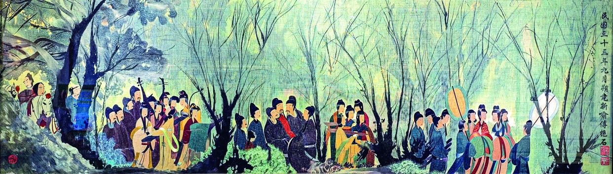 他改良中国画笔法,发明“抱石皴”,散锋乱笔,灵动奔放,淋漓痛快,为中国山水画开辟了新的表现手段,更在人物画中注入精神力量。1942年4月,郭沫若创作的五幕历史剧《屈原》在重庆公演。时年38岁的傅抱石看完此剧后深受感染,创作了《屈原》《苏武牧羊图》等画作,颂扬屈原的爱国情操,表达了抗战必胜的信心。