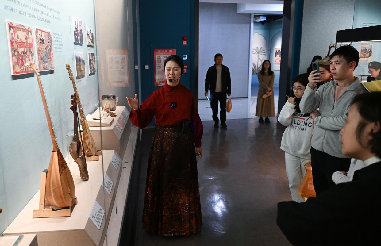 11月29日,工作人员为观众讲解现场展出的乐器。新华社记者 邓华 摄