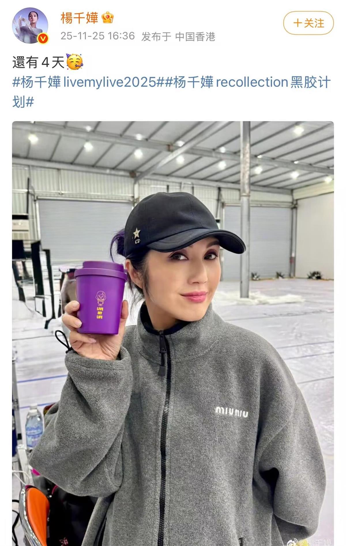 杨千嬅本人显然也对这次30周年在红馆的演唱会异常重视。在微博,她提前半个月就开始倒数,从“开始有演唱会的气氛,有点兴奋但紧张”到“距离演出还有十多天,依然感觉梦幻”,再到“还有半个月”“还有10天”“还有6天”的计时,仪式感满满。