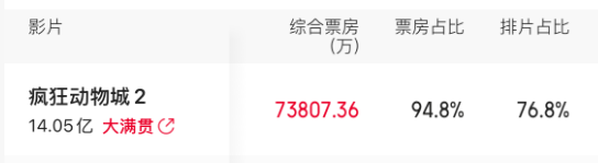这还不算夸张,杭州一家影院29日《疯狂动物城2》的排片率已经超过九成。29日的观影人次还会打破影城于今年2月14日创下的最高纪录。