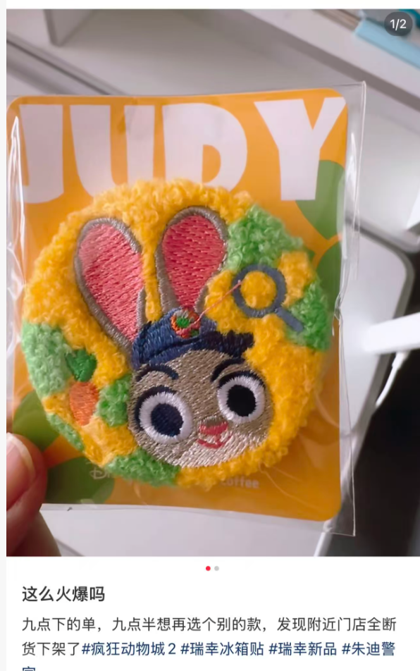 而且来看这部动画片的不只是带着孩子的家庭观众,年轻观众占比也极高。《疯狂动物城2》相关衍生品更是卖疯了,“我们一直在断货、补货,断货、再补货……”