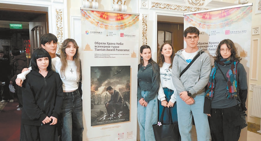 俄罗斯观众热情参加北京电影“走出去”交流活动,与喜爱的电影海报合影。