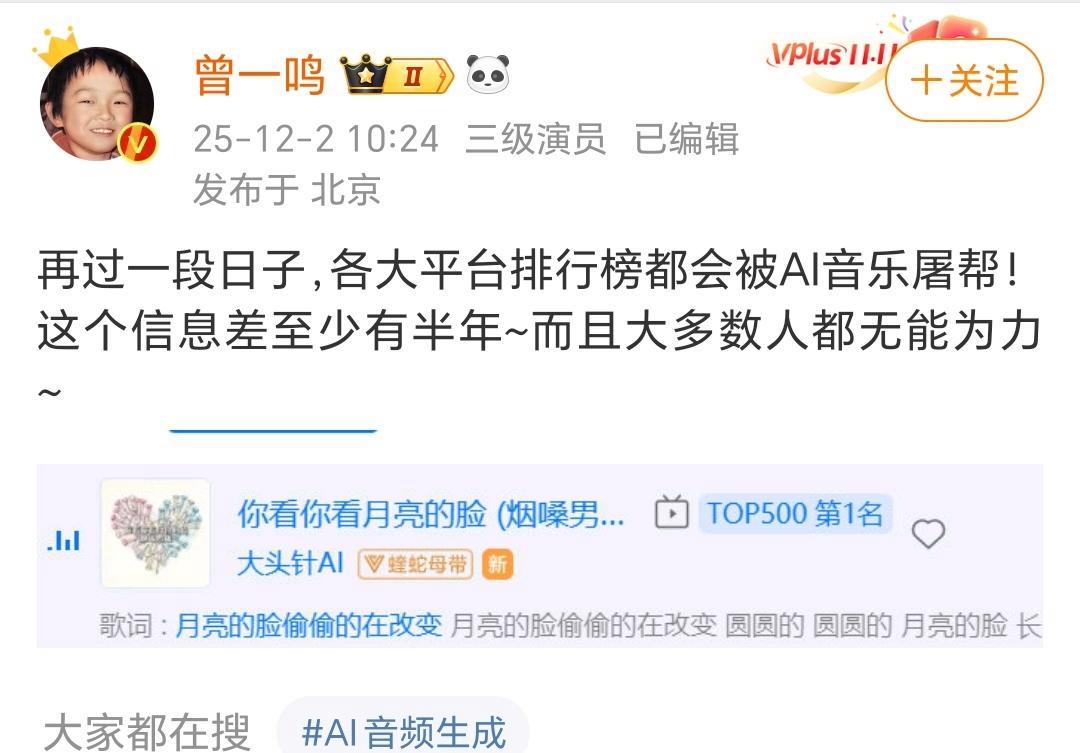 随着Suno、Udio等AI音乐工具的普及,普通人也能轻松“创作”并“演唱”歌曲。AI在作曲、演唱上展现的强大能力,不禁让人发问:它会取代人类音乐人吗?