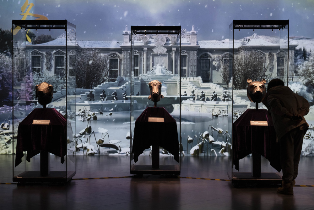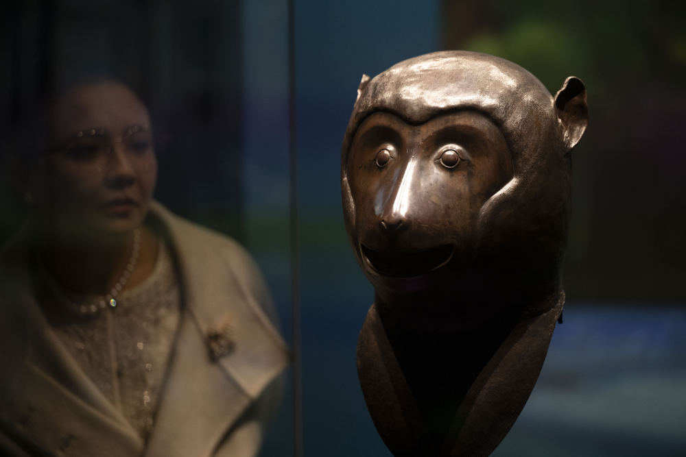 12月4日,参观者在特展现场观看展出的猴首。新华社记者 张涛 摄
