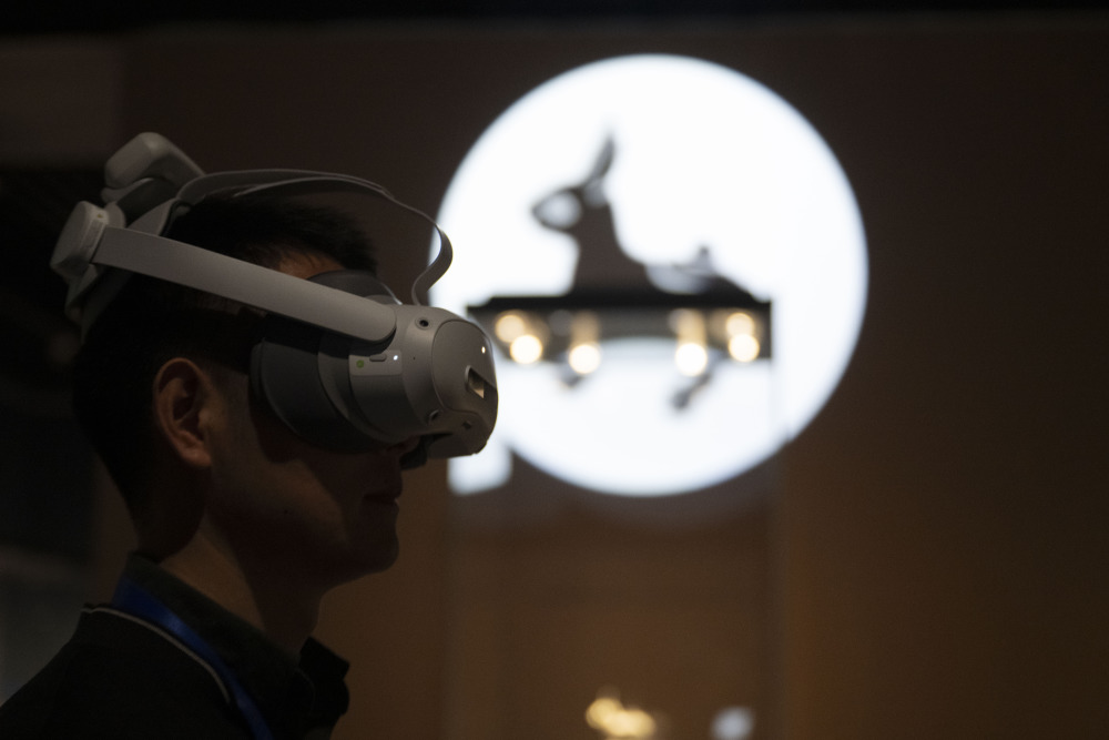 12月4日,参观者现场体验数字设备。新华社记者 张涛 摄