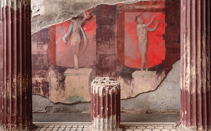 6.在意大利著名的庞贝古城,又一处精美壁画重见天日:在一间餐室的墙壁上,绘有真人尺寸的“酒神狄俄尼索斯巡游图”,其中女性形象成为绝对主角。研究人员认为:这证明屋主有意营造一种“女性放纵”的奇观氛围,此处空间可能用于某种神秘的入会仪式。