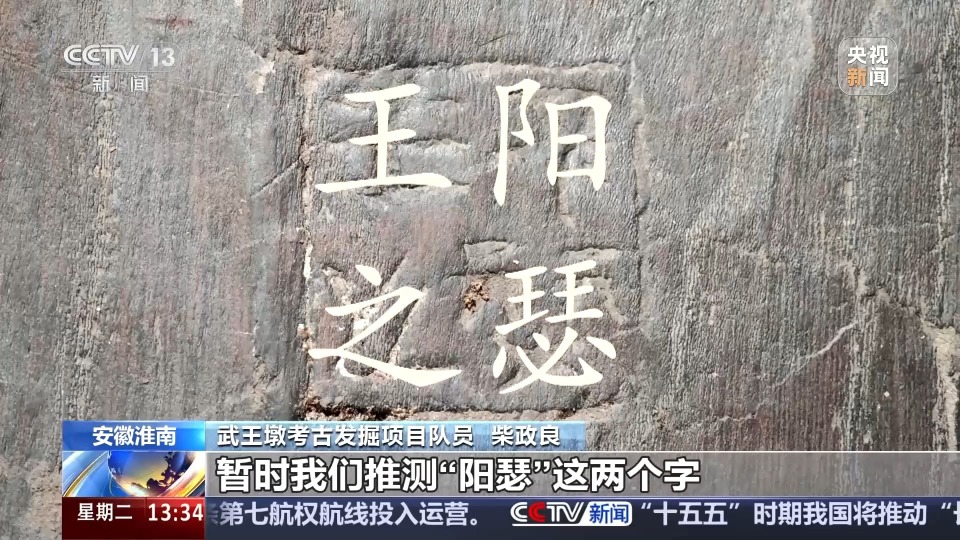 在清洗武王墩棺椁底部的枕木时,考古队又发现了全新的文字,不是毛笔墨书,而是印章铭文,并且数量很少。虽然带有偶发性,但有望进一步揭开武王墩大墓的营建之谜。