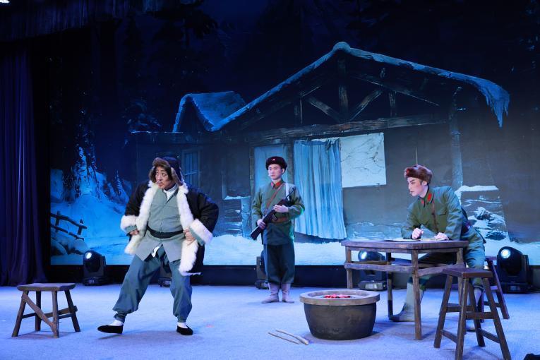 当晚,《智取威虎山》在长天楼剧场亮丽登场。作为上海京剧院红色经典保留剧目,现代京剧《智取威虎山》亦是京剧舞台上六十余年久演不衰的现代戏代表作。它气势宏大、场面壮观,兼具革命英雄主义和浪漫主义。剧中音乐则极富艺术感染力、唱段脍炙人口流传极广,传奇侦察英雄“杨子荣”也成为舞台、银幕上的经典形象。