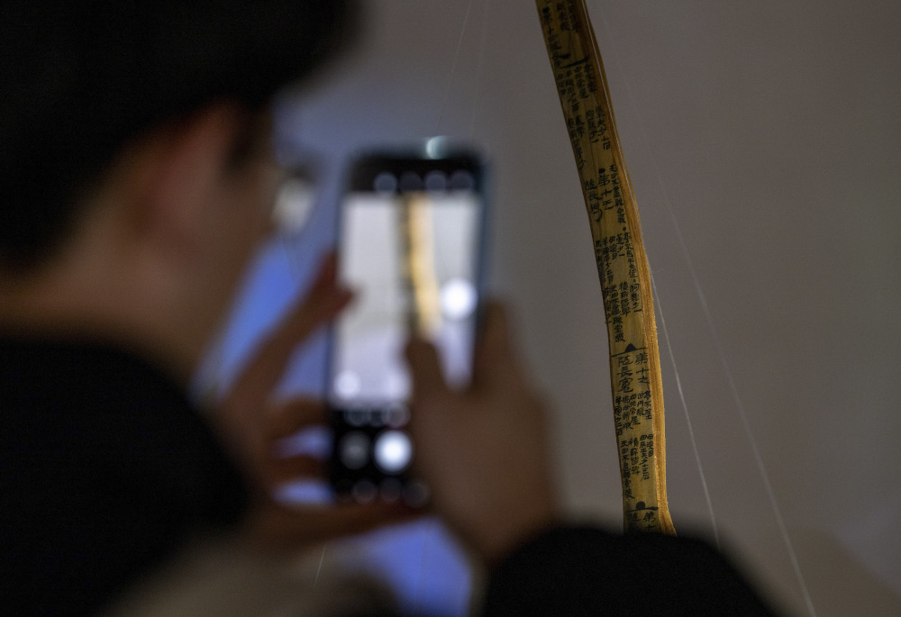 12月28日,参观者拍摄展出的居延汉简。新华社记者 连振 摄
