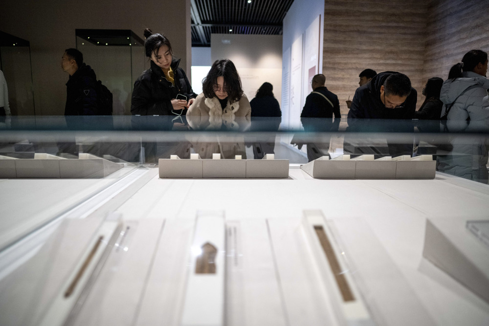 12月28日,参观者参观展出的居延汉简。新华社记者 连振 摄