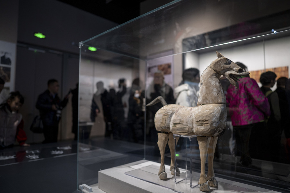 12月28日拍摄的展出的汉代木马。新华社记者 连振 摄