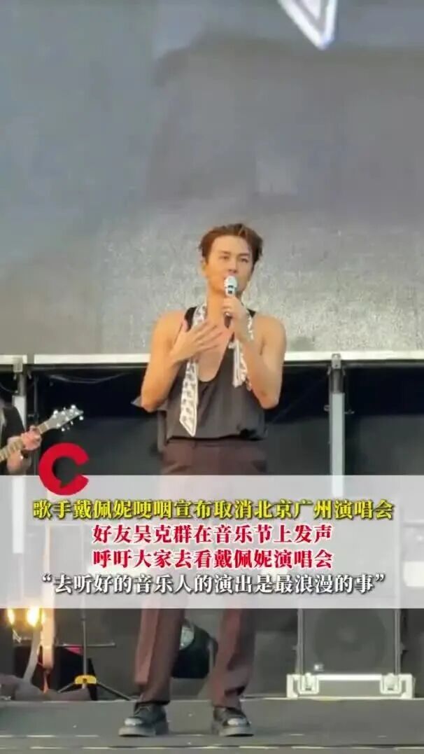 12月28日,歌手吴克群在中山草莓音乐节上,呼吁大家去看戴佩妮演唱会,“去听好的音乐人演唱会就是很浪漫的事”。