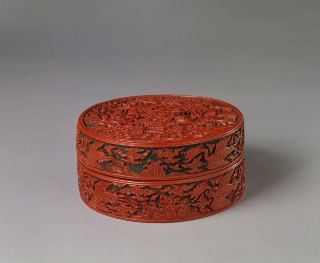 剔红松竹梅岁寒三友纹圆盒(故宫博物院藏)