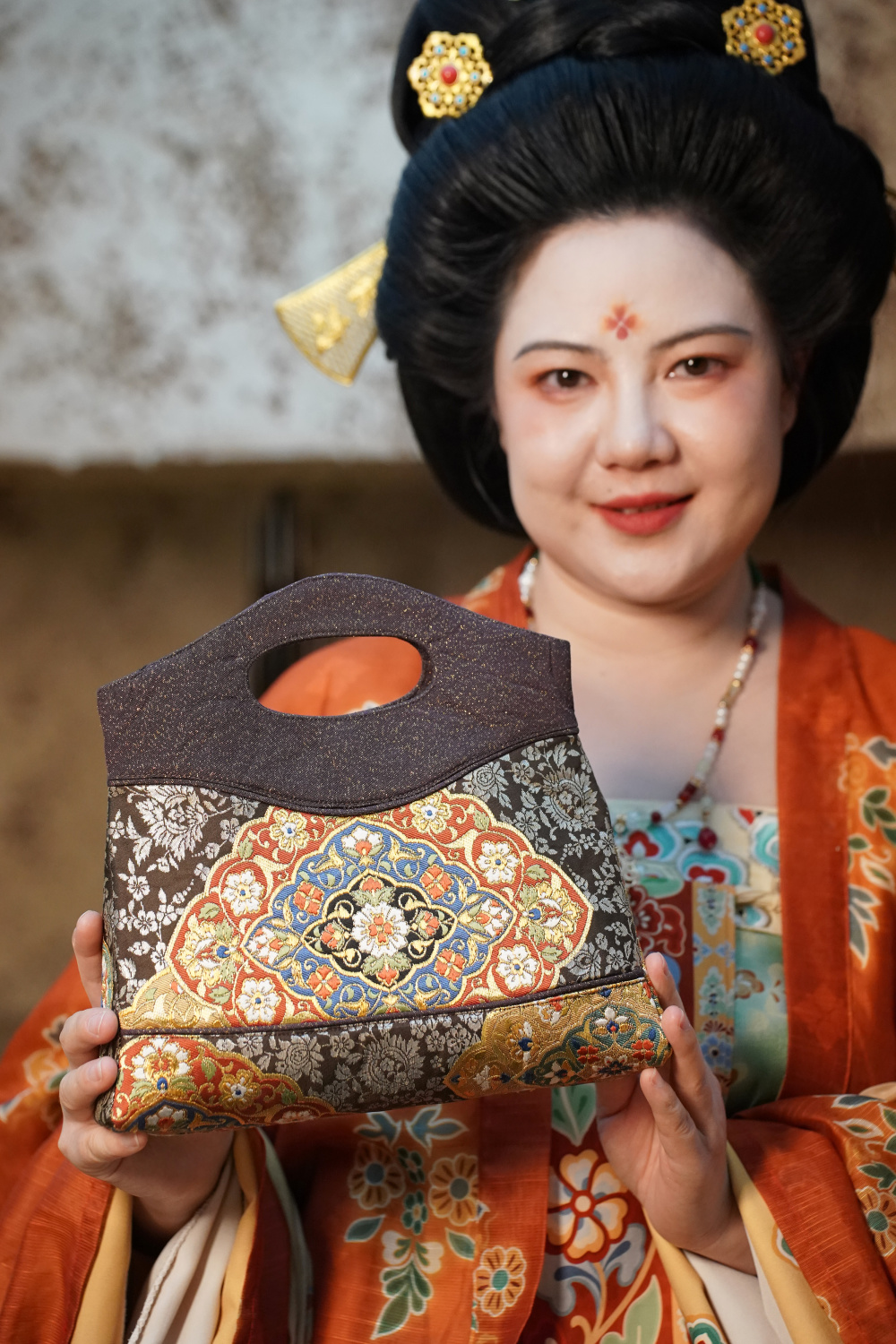 1月9日,李欢在展示她的团队用唐锦工艺制作的文创产品。新华社记者 邵瑞 摄