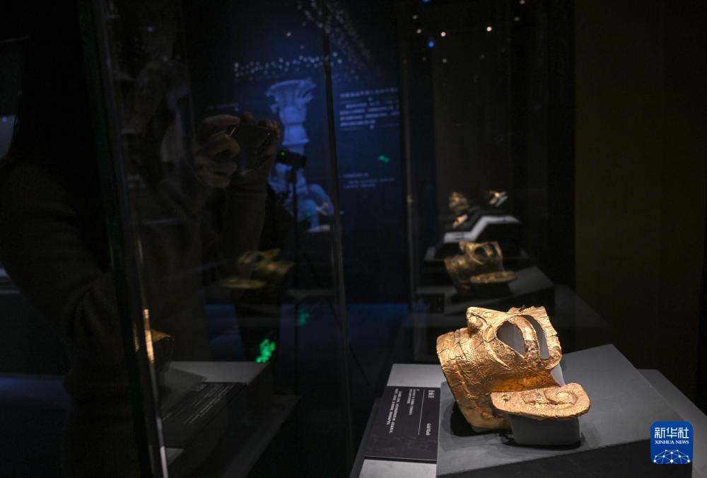 1月18日,观众参观展出的金面具。