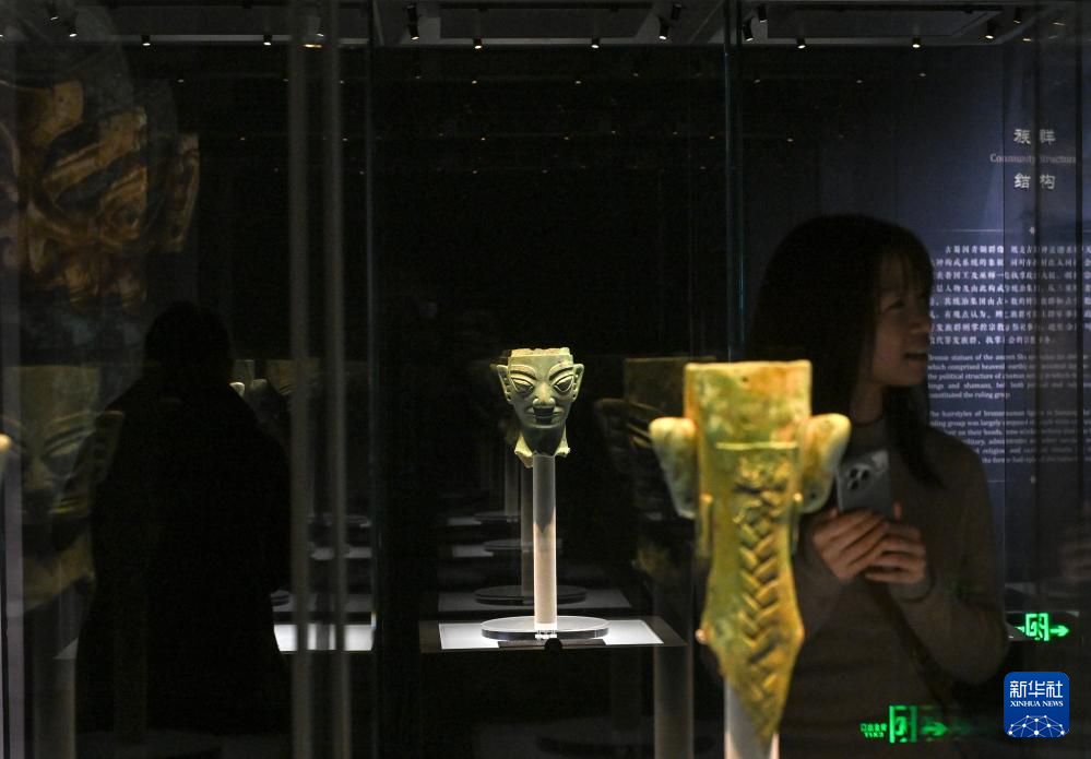 1月18日,观众参观展出的青铜人头像。